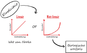 Het bekendste voorbeeld van wat we in mijn groep gedaan hebben en wat uiteindelijk, laten we zeggen, tot wasdom of succes gekomen is, is eigenlijk één van de onderwerpen waar ik als postdoc mee begonnen ben: niet-lineaire mechanische eigenschappen van levende materialen. Ik had samen met mijn toenmalige baas Paul Janmey aan de Universiteit van Pennsylvania een interessante eigenschap van biologische weefsels ontdekt. Vele soorten weefsels, zoals het weefsel dat tussen cellen inzit (de extracellulaire matrix), het weefsel waar cellen zelf uit gemaakt zijn (een polymerennetwerkje van hoofdzakelijk actine en dergelijke) en zelfs grotere stukken weefsels, zoals huid, bleken allemaal een interessante eigenschap te hebben. Als je een klein beetje aan deze weefsels trekt zijn ze heel slap en rekbaar, maar als je er heel hard aan trekt worden ze steeds stijver en moeilijker om uit te rekken. Dat is het tegenovergestelde van wat je gewend bent van elasticiteit in de natuurkunde. De Wet van Hooke zegt dat (voor bijvoorbeeld een springveer) de uitrekkingskracht evenredig is met de uitrekking. Hierbij hangt de evenredigheidsconstante, de veerconstante, niet af van de hoeveelheid uitrekking; de uitrekkingen van 10 naar 11 centimeter of van 20 naar 21 cm hebben beiden evenveel kracht nodig.