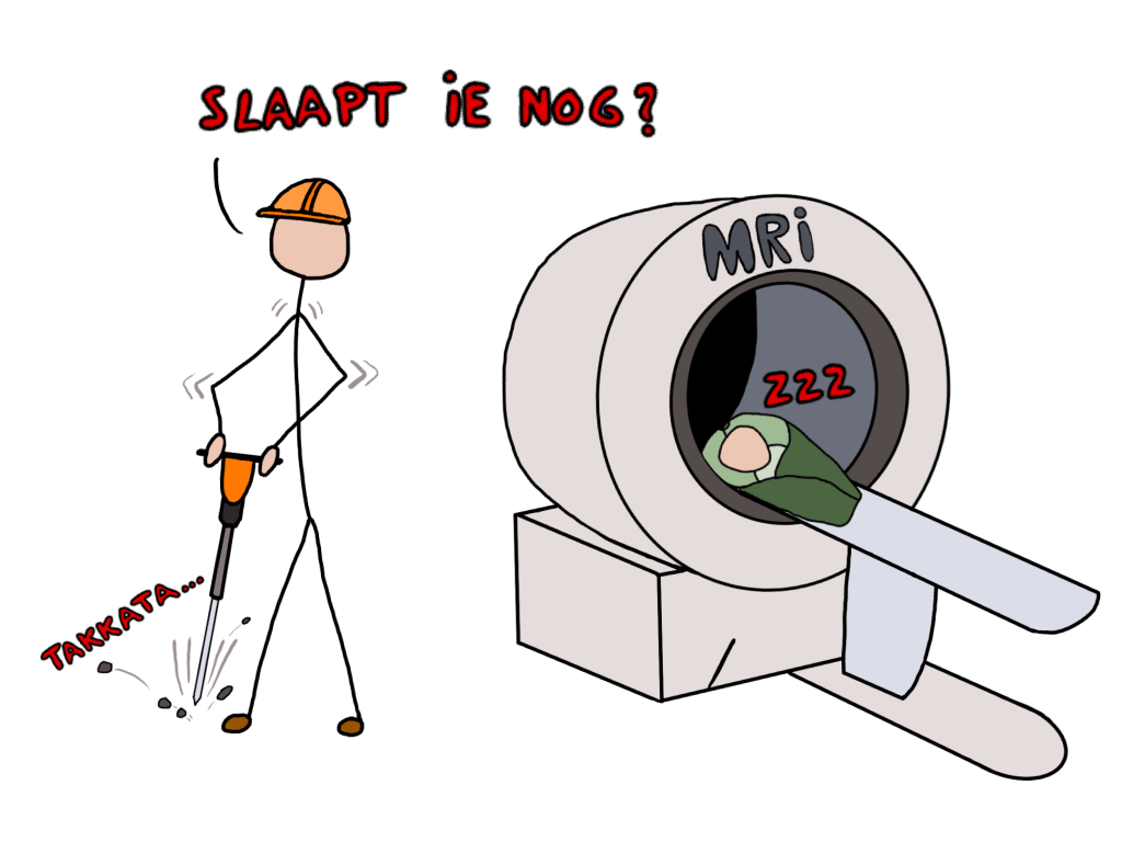 Je moet natuurlijk wel een indicatie hebben waarom je een scan maakt. Hierover zeggen wij dat alle kinderen die te vroeg geboren worden onder de 28 weken (aldus 12 weken te vroeg) een MRI scan moeten krijgen om te kijken of er hersenschade is en te zoeken naar dingen die we met de echo mogelijk niet hebben kunnen zien. Bij gezonde kinderen mogen we niet zomaar een MRI maken. Dit was eigenlijk tot voor kort een notitie bij de CCMO (centrale medische ethische commissie) in Nederland. Al gebeurde het in landen om ons heen wel, waardoor we nu sinds kort toestemming hebben gekregen om in ieder geval bij 100 gezonde baby’s de gezonde hersenontwikkeling te onderzoeken. Dit is waardevol om te kunnen vergelijken met de hersenontwikkeling van zieke baby’s. We doen veel moeite om de baby’s te laten slapen in de MRI, want ze moeten wel stilliggen tijdens de scan. Zodra ze echter diep slapen (met of zonder slaapdrankje), verbaasd het me hoe ze door alle lawaai heen slapen. Je zou bij wijze van spreken kunnen stofzuigen in de kamer en dan slapen ze gewoon door. Al kan je niet anders dan stoppen met het MRI onderzoek zodra ze weer wakker worden. Allereerst zijn je plaatsjes dan bewogen en ten tweede willen we niet dat de kinderen oncomfortabel zijn.
