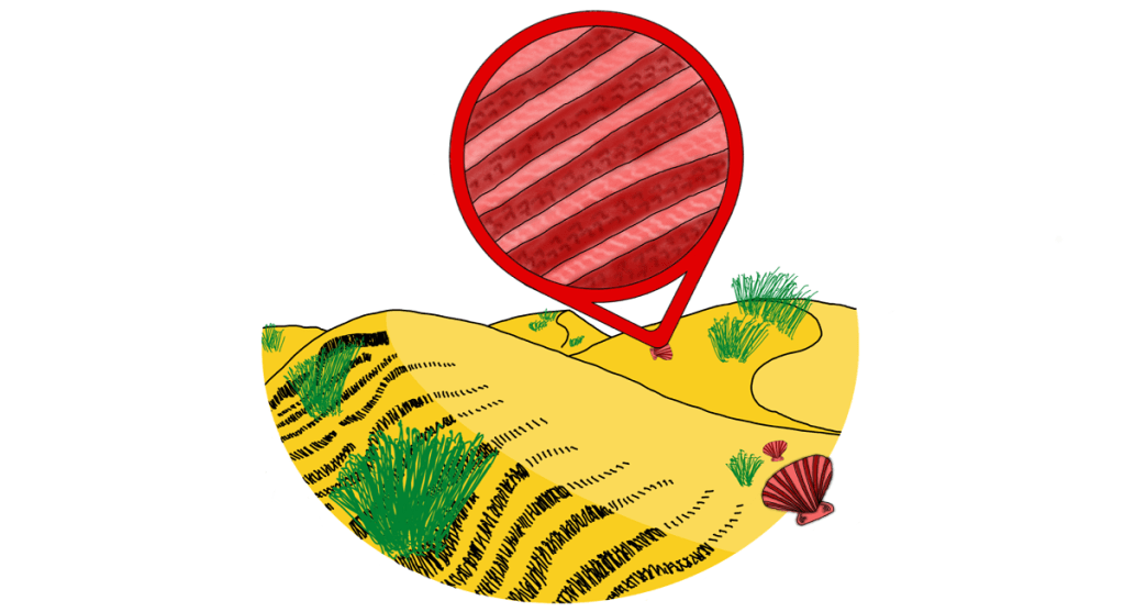 Die situatie probeer ik natuurlijk te vermijden (grapt). Ik denk dan: wat we vaak interessant vinden, is hoe spontaan patronen ontstaan. Je loopt bijvoorbeeld over het strand en dan zie je wel eens die fantastische ribbel-patronen in het zand. Maar hoe komen die daar nou? Wat heel intrigerend is, is dat dit soort patronen ook te zien zijn in levende organismen. Denk aan schelpen met allerlei patronen. Het rare is dat je het ook op allemaal verschillende lengteschalen ziet. Op het strand kan je dit patroon nog namaken door netjes te harken, maar het bijzondere is dat je deze patronen ook op een hele kleine schaal kan terugvinden. Dit is natuurlijk heel lastig om na te maken, maar wel heel interessant. We weten dat het kan, want micro-organismen die fantastische, complexe chemische materialen bouwen kunnen het dus kennelijk ook! Wij willen weten wat de chemische regels zijn die er voor zorgen dat je spontaan zulke complexiteit krijgt. Het liefst zoeken we dan ook de lengteschalen uit die heel moeilijk bereikbaar zijn op andere manieren.