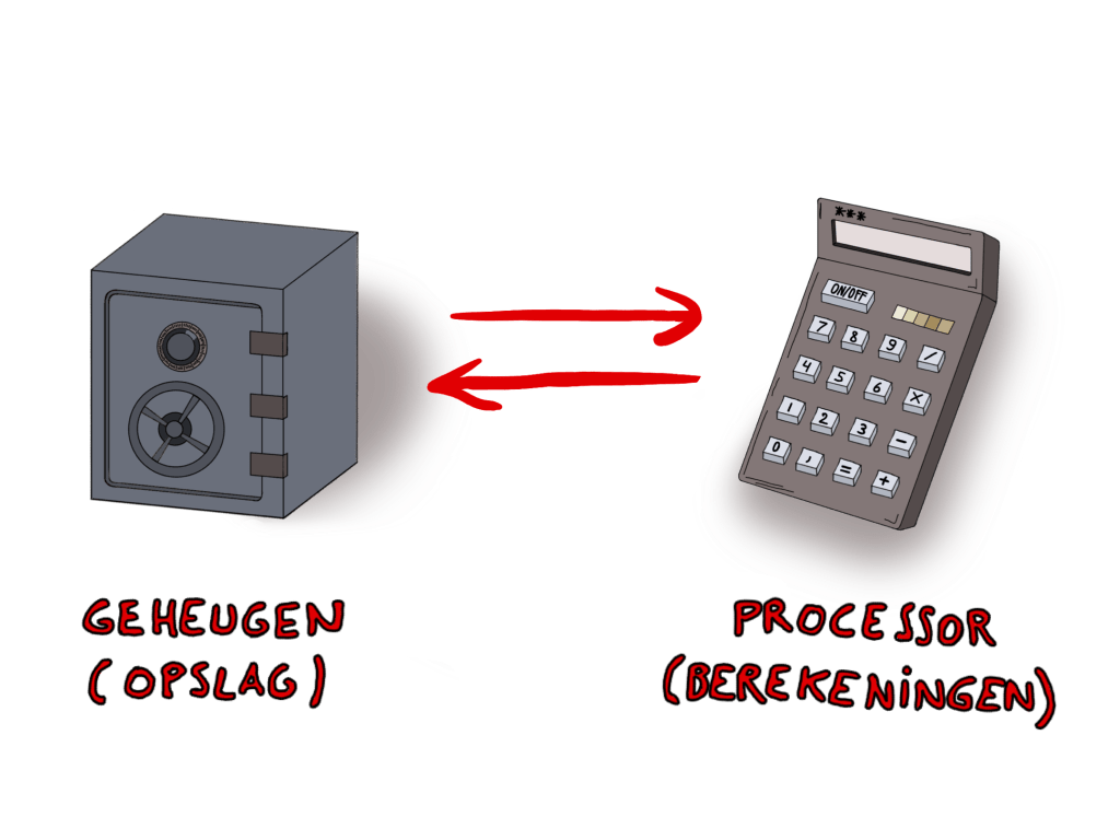 Bij al die mogelijkheden voor AI hoort natuurlijk ook een hardware kant van het verhaal. Het gaat niet enkel over algoritmes, maar ook over hoe snel en goed je deze uitvoert. Wat we nu heel duidelijk zien, is dat de huidige hardware in onze standaard computers fantastisch ongeschikt is om die machine learning taken uit te voeren. (Notitie: machine learning is de verzamelnaam voor technieken en algoritmes die systemen helpen hun uitvoering te ‘leren’ verbeteren. Deze technieken zijn zodoende een onderdeel van AI.) Waarom de hardware zo ongeschikt is, heeft in essentie te maken met de basisstructuur of architectuur van onze huidige computers. Deze structuur is ontwikkeld voor digitale stap-voor-stap berekeningen, zoals ooit bedacht door Alan Turing en John von Neumann. Dit principe heeft tientallen jaren gewerkt en is nog steeds heel robuust. Alleen, waar we nu dus tegenaan lopen is dat hier ook wel een prijskaartje aan hangt. Momenteel denken computers binair: in termen van nullen en enen. Ze hebben sequentiële stappen, en de processor (waar berekeningen worden uitgevoerd) en het geheugen (waar de resultaten worden opgeslagen) zijn gescheiden van elkaar. De consequentie is dat gegevens telkens op en neer moeten gaan tussen de processor en het geheugen, wat met een enorm prijskaartje komt in termen van energie en tijd. Dat begint zich nu vooral op te breken bij data intensieve taken. Bij machine learning wordt ontzettend veel data verwerkt en heb je heel veel data nodig om het systeem iets te ‘leren’. Het heet niet voor niks ‘machine learning’; je hebt ontzettend veel voorbeelden nodig om je systeem te trainen.