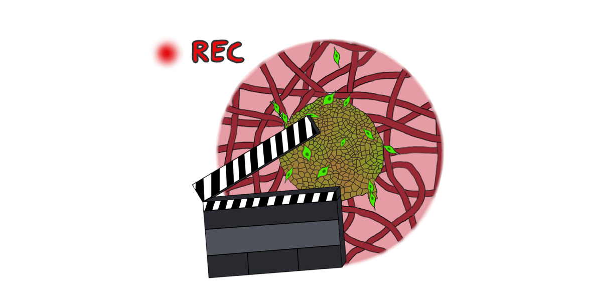 Veel onderzoeksgroepen die kanker bestuderen, werken met cellijnen. Een cellijn is een type cel die ooit uit een patiënt is gehaald en wegens inherente eigenschappen blijft delen in nieuwe dochtercellen [elke cel splits na een zekere tijd in twee nieuwe cellen]. Zodoende kan je een cellijn vanuit een klein aantal cellen door laten groeien tot een groot aantal cellen en deze gebruiken voor experimenten. Als je cellen invriest, gaan ze ‘slapen’ en zodra ze je ze weer ontdooit gaan ze verder met het opdelen in nieuwe cellen. Hiermee kun je in principe oneindig onderzoek blijven doen. Naast cellijnen werken groepen met patiëntmateriaal, weefsels die weggehaald worden bij de patiënt en waar onder de microscoop naar gekeken wordt. Maar met intravitale microscopie kunnen jullie cellen live in levend weefsel visualiseren. Wat zijn hier de voordelen van?